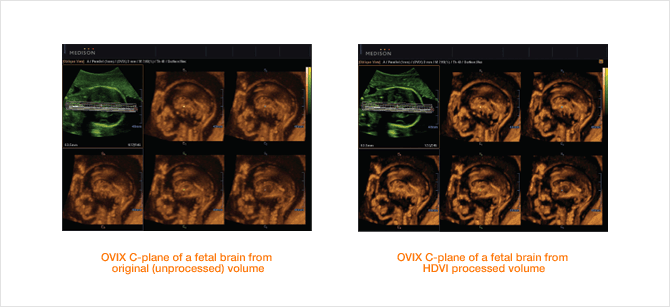 HDVI™ is based on non stationary adaptive filtering resulting in removal of unwanted speckle and noise whilst increasing visualization of edges and small structures in volume data. HDVI™ uses a 3D processing algorithm that is based on 3D matrix processing of volume data.